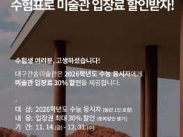 “수험생이면 대구간송미술관 입장 30% 할인” 대구간송미술관, ‘26학년도 대입 수험생 응원’ 특별 혜택 마련