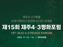 제주4·3평화재단은 11월 13일부터 14일까지 제주 썬호텔에서 '제주4・3 기록물 세계기록유산 등재와 4・3의 세계화'를 주제로 ‘제15회 제주4・3평화포럼’을 개최한다고 밝혔다.