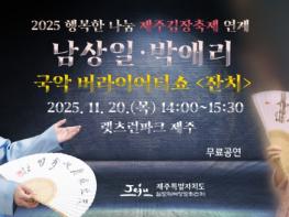 [한식일보] 제주특별자치도 설문대여성문화센터는 오는 20일 오후 2시부터 3시 30분까지 렛츠런파크 제주에서 ‘2025 행복한 나눔 제주김장축제’와 연계한 국악 버라이어티쇼 ‘잔치’를 개최한다.