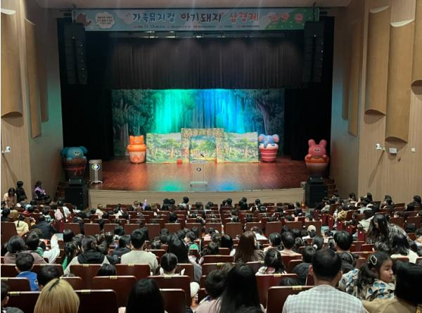 [한식일보] 충북 영동군 어린이집연합회는 13일 영동군 복합문화예술회관에서 어린이집 보육아동 및 학부모 등 300여 명을 대상으로 가족뮤지컬 공연 ‘아기돼지 삼형제’를 선보였다.