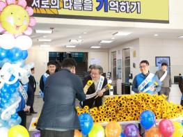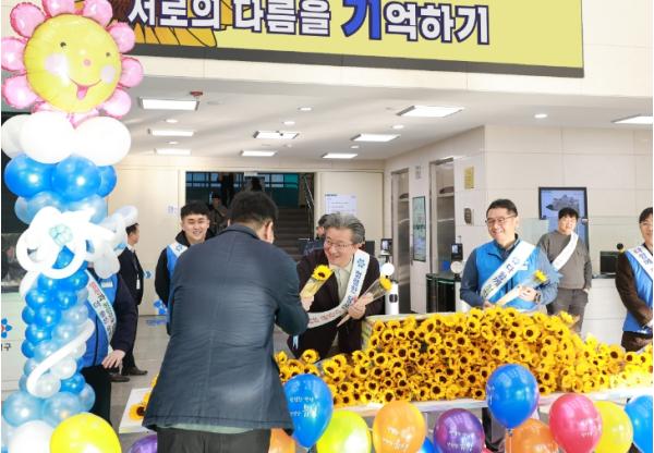 행사에서는 정용래 유성구청장과 공무원 노동조합 임원들이 출근하는 직원에게 슬로건 스티커가 부착된 해바라기꽃을 전달하며 상호 존중과 청렴 실천 의지를 다졌다.