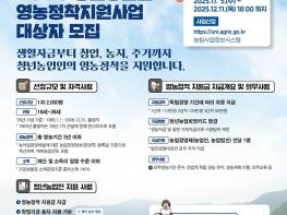 [한식일보] 강진군이 젊고 유능한 인재의 농업 진출을 위해 오는 12월 11일까지 2026년 청년후계농 영농정착지원사업 대상자를 모집한다.