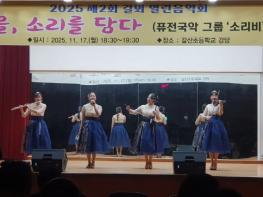 이번 공연에는 퓨전국악그룹 ‘소리비’가 초청되어 아름다운 나라를 비롯한 10여 곡의 다채로운 무대를 선보였다. 국악의 전통적인 선율에 현대적인 감각을 더한 공연은 학생들과 지역 주민들에게 깊은 울림을 선사했고, 관람석에서는 공연 내내 박수와 환호로 화답하며 연주자들과 함께 호흡하는 문화의 장을 만들어냈다.