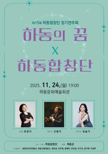 [한식일보] 오는 11월 24일 저녁 7시, 하동문화예술회관 대공연장에서 ‘제15회 하동합창단 정기연주회’가 열린다.