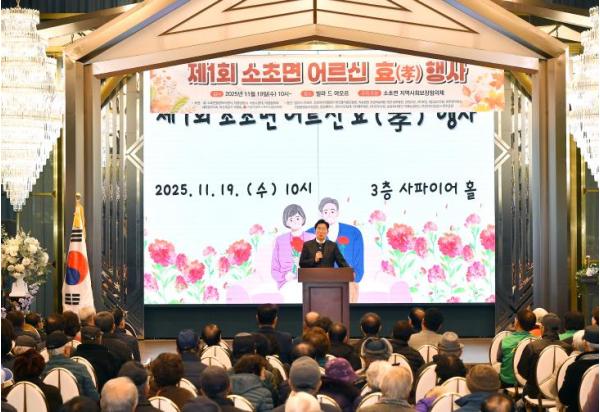 이번 행사는 소초면에서 처음 열린 경로잔치로, 지역사회의 온정을 나누는 뜻깊은 자리로 꾸며졌다. 지역 어르신 500여 명이 참석한 가운데, 축하공연을 시작으로 즐거움과 감동을 안겨주는 시간이 이어졌다. 어르신들은 갈비탕, 전, 떡 등 정성스럽게 준비된 음식을 함께 나누며 즐거운 시간을 보냈다.