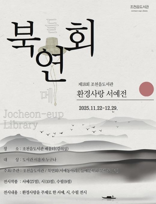 [한식일보] 제주시 조천읍도서관은 11월 22일부터 12월 27일까지 도서관 1층 배움터에서 ‘제18회 환경사랑 서예전’을 개최한다.