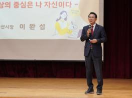 [한식일보] 이완섭 서산시장이 20일 해미중학교 학생 180여 명을 대상으로 진로 특강을 진행했다.