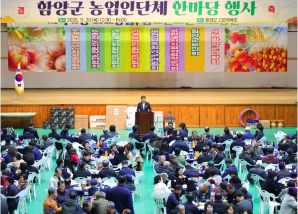 [한식일보] 함양군은 11월 20일 고운체육관에서 ‘2025년 함양군 농업인단체 한마당 행사’를 성황리에 개최했다고 밝혔다.
