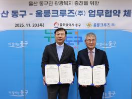 [한식일보] 울산 동구는 11월 20일 오후 2시 ㈜울릉크루즈와 업무협약을 체결하고 동구민의 관광 편의 증진과 해양관광 활성화를 위한 협력 체계를 구축했다.