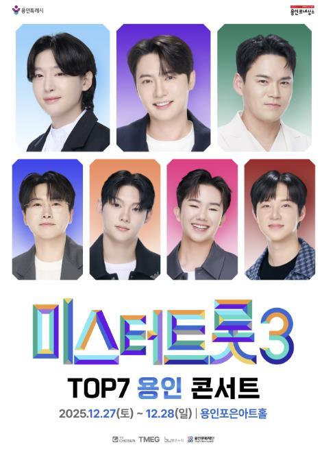이번 공연은 지난 3월 종영한 TV조선 ‘미스터트롯3’를 통해 전국적인 사랑을 받은 TOP7 김용빈, 손빈아, 천록담, 춘길, 최재명, 남승민, 추혁진이 출연한다. 화려한 무대 연출과 다채로운 구성으로 용인시민에게 수준 높은 공연을 선사할 예정이다.