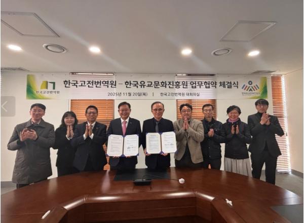 [한식일보] 한국유교문화진흥원과 한국고전번역원은 11월 20일, 양 기관의 상생 발전을 위한 업무협약을 한국고전변역원 대회의실에서 체결했다.