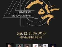 이번 공연은 올 한 해를 마무리하는 무대이자 청주시립국악단의 창단 40주년을 기념하는 뜻깊은 자리로 더욱 특별한 감동을 선사할 예정이다.