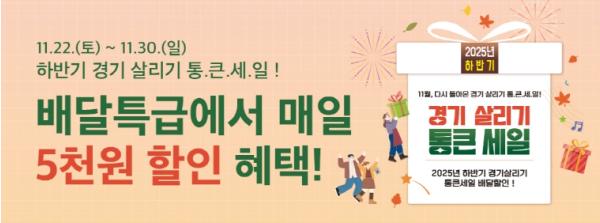 배달특급은 지난 상반기에도 경기도와 경기도시장상권진흥원이 추진한 ‘2025년 상반기 경기 살리기 통 큰 세일’에 참여한 바 있다. 당시 배달특급은 경기도 지역화폐가 연동되는 공공배달앱 3사(배달특급, 땡겨요, 먹깨비) 가운데 가장 먼저 할인 쿠폰을 소진시켰고, 가장 많은 30억 원의 거래액을 기록하며 소비자와 소상공인의 상생을 이끌어 낸 바 있다.