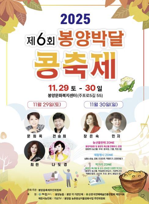 [한식일보] 한때 국민애창곡인 ‘울고 넘는 박달재’로 유명한 제천시 봉양읍에서 11월 29일부터 30일까지 2일간 봉양읍 주포리 소재 문화복지센터 일원에서 제6회 봉양 박달콩 축제가 개최된다.