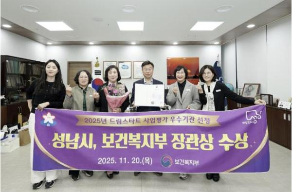 [한식일보] 성남시는 보건복지부 주관 드림스타트 사업 평가에서 우수기관으로 선정돼 보건복지부 장관상을 받았다고 24일 밝혔다.