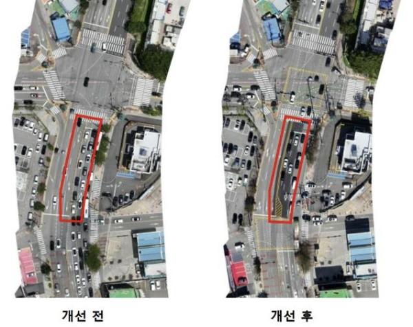‘차선 재조정’은 불필요한 대기시간을 줄이고 차선폭을 최적화해 병목현상을 효과적으로 완화한다. 또한,‘포켓차로 연장’은 회전 차량이 교차로를 점유하는 시간을 줄여 정체를 최소화하고, ‘회차로 설치’는 차량 회전 동선을 정돈해 교차로 내 사고 위험을 낮춘다.