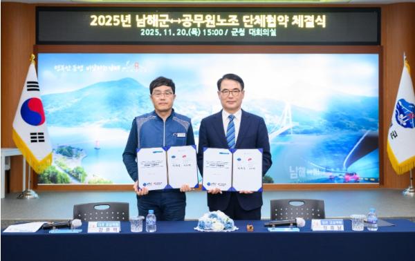 장충남 남해군수는 “이번 협약은 직원이 존중받고, 조직이 성장하며 군민이 신뢰하는 행정을 구현하기 위한 기반이 될 것”이라며 “노사 모두가 제 역할을 다해 완성한 이번 합의가 남해군 행정의 품격을 한 단계 더 높이는 실천으로 이어지길 기대한다”고 말했다.
