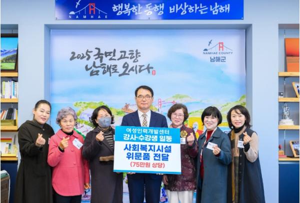 지난 21일 남해군여성인력개발센터 천아트반·퀼트반 강사 및 수강생 대표 등 6명이 제29회~30회 화전문화제 체험부스 운영을 통해 마련한 성금 175만원을 기탁했다.