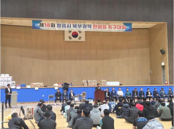 지난 22일 신태인 체육관에서 열린 ‘제18회 정읍시 북부권역 한마음 족구대회’는 동호인들의 뜨거운 열기 속에 소통과 화합의 장으로 거듭났다.