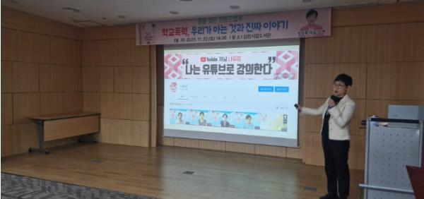 더불어 최근 변화하는 미디어 환경과 청소년의 또래문화, 부모의 소통방식 등이 학교폭력과 어떤 방식으로 연결되는지 설명하고, 실질적인 대응 법과 예방 전략을 제시하며 참가자들의 높은 공감과 호응을 이끌어냈다.