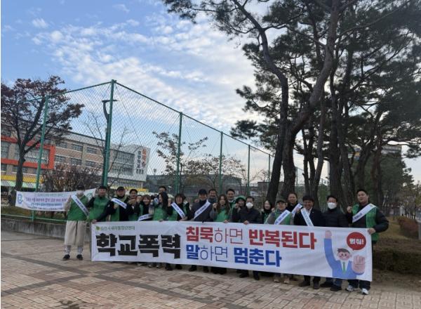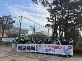 김천시청년새마을연대(회장 이동협)와 김천경찰서는 24일 아침, 율곡초등학교 및 율곡중학교 앞에서 학교폭력 근절 합동 캠페인을 전개했다.