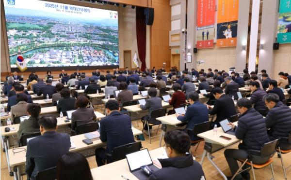 이날 회의에서는 이 외에도 여러 부서가 연말 주요 사업의 추진 상황을 차례로 보고하며 부서 간 협업 사항을 점검했다.