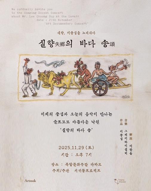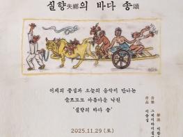 [한식일보] 서귀포시 정방동은 11월 29일, 서귀포시 중앙로 13 복합문화공간 워크라운지에서 '대향, 이중섭을 노래하다 ‘실향의 바다 송’' 문화·예술 공연을 개최한다고 밝혔다.