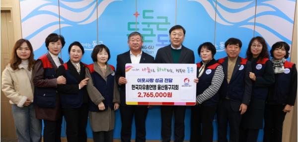 [한식일보] 한국자유총연맹 울산동구지회(회장 이병태)는 11월 24일 오전 11시 울산 동구청을 방문해 이웃돕기 성금 276만 5천 원을 전달했다.