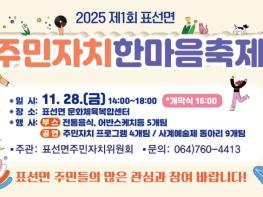 [한식일보] 서귀포시 표선면은 28일 표선면 문화체육복합센터 일원에서 ‘2025 제1회 표선면 주민자치 한마음축제’를 개최한다. 올해 처음으로 진행하는 이번 축제는 표선면 주민자치 프로그램의 1년 활동을 공유하고, 다양한 체험·공연을 통해 주민 간 소통과 화합을 도모하기 위해 마련됐다.