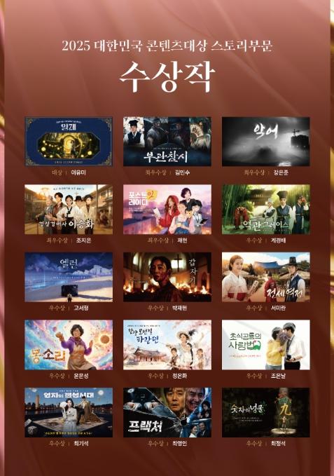 [한식일보] 문화체육관광부는 한국콘텐츠진흥원과 함께 11월 25일 오후 5시, 코엑스(서울 강남구)에서 ‘2025 대한민국 콘텐츠 대상 스토리 부문 시상식’을 열고 수상작 15편을 시상한다.