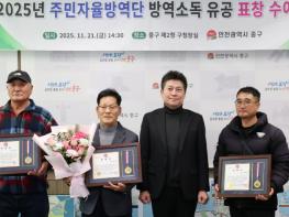 구는 이를 위해 지난 21일과 24일 각각 중구청 1청사와 2청사에서 ‘2025년 주민자율방역단 유공 표창 및 감사패 수여식’을 열고, 적극적이고 모범적인 활동을 펼친 모범 단원 총 8명에게 유공자 표창을 전달했다.