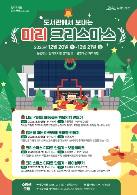 [한식일보] 제주시 탐라도서관은 시민에게 특별한 연말 추억을 선사하고자 ‘도서관에서 보내는 미리 크리스마스’ 프로그램을 운영한다.