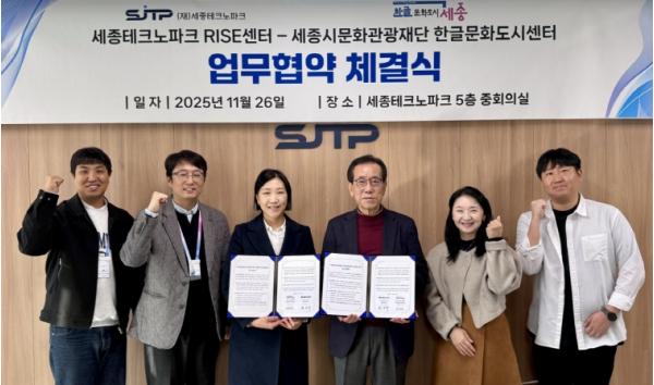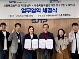 [한식일보] 세종시문화관광재단 한글문화도시센터(센터장 양유정)와 세종테크노파크 RISE센터(센터장 윤석무)가 ‘한글문화도시 세종’ 조성과 지역혁신 역량 강화를 위한 협력에 나섰다.