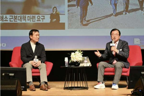 [한식일보] 교육을 도시의 미래로 끌어올린 ‘하남교육 토크콘서트’ '하이 하남! 미래교육도시로 디자인하다'가 26일 하남문화예술회관 아랑홀에서 성황리에 열렸다. 이현재 하남시장과 임태희 경기도교육감이 함께 무대에 올라 현장 사진과 영상을 통해 교육정책과 현안을 나눴으며, 400여 명의 시민이 참석해 뜨거운 호응을 보냈다.