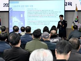 1부(오전) 교육에서는 대전중부경찰서 박정민 강사가 범죄 예방을 주제로, 대전서부소방서 전덕일 강사가 피난시설 관리 및 화재 대비·대처·진압을 주제로 교육을 진행했다. 이어 2부(오후) 교육에서는 대한주택관리사협회 대전시회 최인석 전문강사가 최근 개정된 공동주택관리 법령 및 지침을 중심으로, 공동주택문화연구소 표승범 전문강사가 층간소음 등으로 인한 주민 간 갈등 사항과 이를 최소화할 수 있는 방안 등에 대해 교육을 실시하며, 관계자들의 전문성을 높이는 데 집중했다.