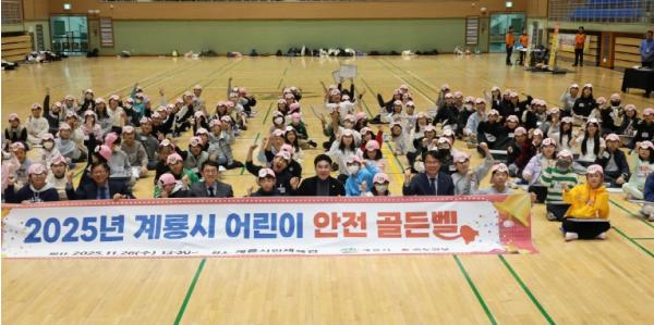 [한식일보] 계룡시는 26일 계룡시민체육관에서 관내 초등학생 150여명이 참여한 가운데 ‘2025년 도전! 계룡시 어린이 안전골든벨’을 개최했다.