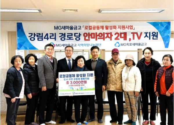 [한식일보] MG옥포새마을금고와 MG새마을금고 지역희망나눔재단은 27일 달성군 옥포읍 강림4리 경로당에 안마의자 2대와 55인치 TV 1대(총 500만 원 상당)를 전달했다.