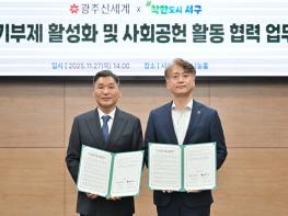 협약에 따라 ▲㈜광주신세계는 임직원을 대상으로 고향사랑기부제 안내 및 참여를 독려하고 ▲서구는 답례품 품목 확대와 함께 기부자 혜택 정보에 대한 접근성과 시인성을 높여 기부 참여를 유도할 계획이다. 아울러 양 기관은 지역사회 상생을 위한 사회공헌 프로그램도 공동으로 발굴‧추진한다.