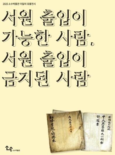 [한식일보] 영주시 소수박물관은 12월 1일부터 2026년 2월 22일까지 이달의 유물전시 ‘서원 출입이 가능한 사람, 서원 출입이 금지된 사람’을 개최한다.