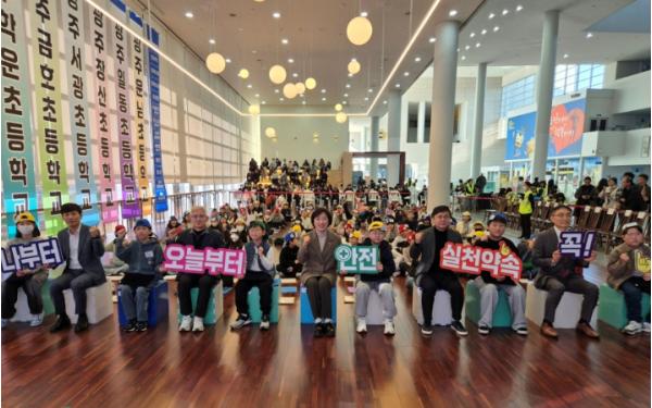 이번 행사는 교통안전의 중요성을 되새기고 안전수칙 실천 의지를 다지고자 마련했으며, 초등학생·학부모 등 300여 명이 참석했다.