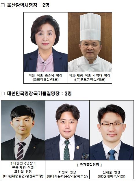 한편 울산시는 지금까지 총 239명의 명장을 배출했다. 이 가운데 울산광역시명장은 42명, 대한민국명장은 53명, 국가품질명장은 144명이다.