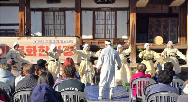 참가자들은 종택에 도착해 종손과 종부께 인사를 시작으로, 경남 무형유산 거창 일소리와 판소리 공연을 관람하고 사당 인사, 전통 입학례, 교재 엮기(오침안정법) 등의 체험을 진행했다.