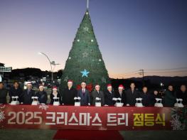 [한식일보] 청도군은 지난 28일 화양읍 범곡사거리에서 관내 주요 기관, 단체장 및 종교단체 내빈 등이 참석한 가운데‘2025년 크리스마스트리 점등식’을 개최했다고 밝혔다.