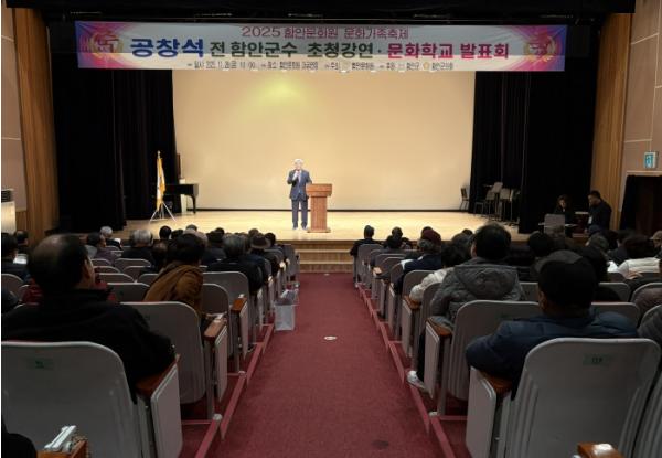 이번 축제는 지난 한 해 동안 함안문화원에서 진행된 다양한 문화 활동을 결산하고 지역 문화 발전을 도모하기 위해 마련된 자리로 많은 군민들이 참석해 행사에 뜨거운 관심을 보여주었다. 명사로 초청된 공창석 전 함안군수가 ‘경제로 읽는 우리 역사’라는 주제로 특별 강연을 진행하여 참석자들의 큰 호응을 얻었다. 공 전 군수는 역사 속 경제 흐름을 통해 현대 사회를 이해하는 심도 있는 관점을 제시하며 군민들의 공감을 이끌냈다.