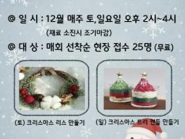 연말을 맞아 크리스마스 주제로 운영되는 이번 주말 체험은 완성된 작품을 인테리어 소품이나 연말 선물로 활용할 수 있어 참여 만족도가 높을 것으로 기대된다.