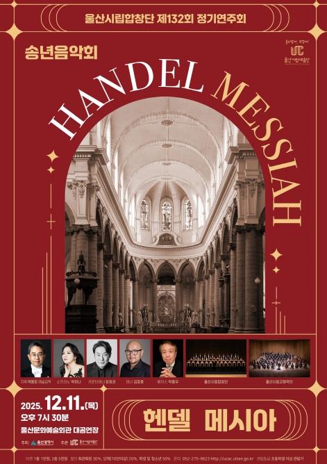 울산시립합창단 제132회 정기연주회 송년음악회‘헨델 메시아’선사