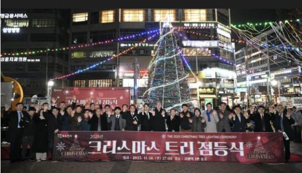 [한식일보] 동두천기독교연합회는 지난 11월 30일 오후 5시, 지행역 1번 출구 앞 광장에서 '2025년 크리스마스 트리 점등식'을 개최했다.