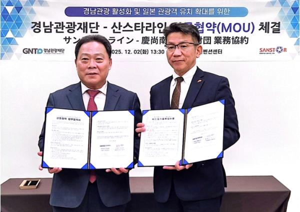 [한식일보] 경남관광재단은 12월 2일 창원컨벤션센터에서 팬스타그룹 일본 현지법인인 ‘산스타라인(SANSTAR LINE)’과 ‘경남 관광 활성화 및 일본 관광객 유치 확대’를 위한 업무협약(MOU)을 체결했다고 밝혔다.