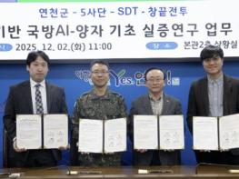 [한식일보] 연천군은 지난 2일 군청 상황실에서 육군 제5보병사단, SDT(주), 사단법인 창끝전투와 함께 AI 대전환 시대에 대응하고 지역의 새로운 성장 동력을 확보하기 위한 ‘지역기반 국방 AI·양자 기초 실증연구’ 업무협약을 체결했다고 밝혔다.