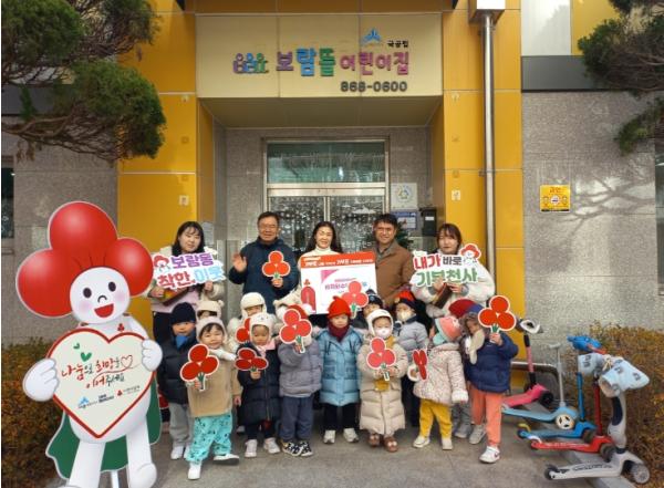 기부금은 보람뜰어린이집이 지난달 학부모·원아들과 함께 개최한 바자회를 통해 마련한 수익금이다.